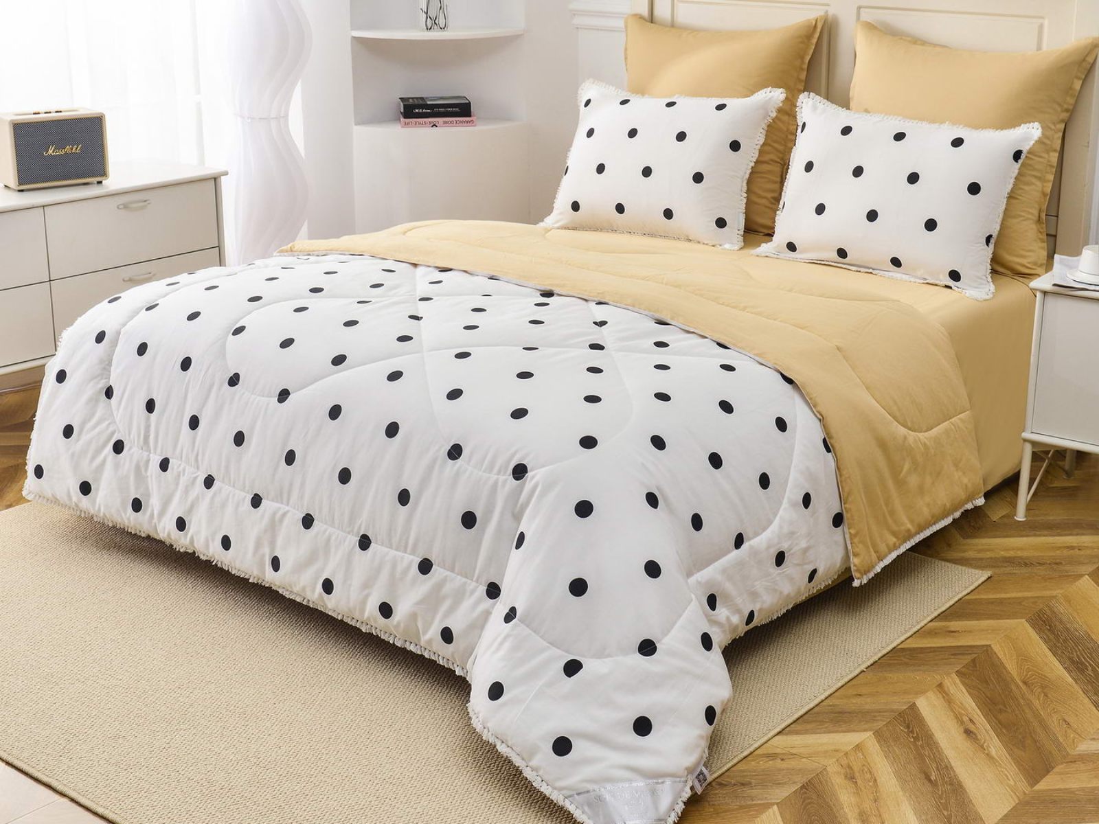 В комплекты комфортеров с одеялом Бернадетт входят наволочки, простыня и легкое всесезонное одеяло. Оцените это современное и очень удобное решение, которое идеально подходит тем, кто не любит возиться с пододеяльниками.