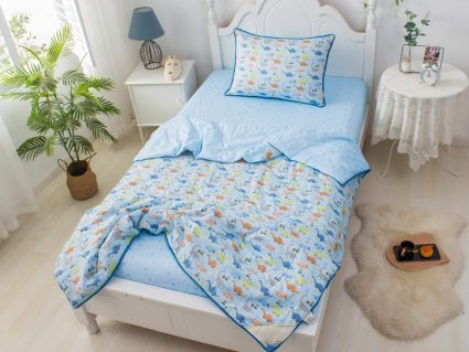 Само одеяло тонкое и легкое, но под ним ребенку не будет холодно зимой или жарко летом. Такое одеяло можно использовать в любое время года, 100% хлопок гарантирует качественный сон, т.к. натуральная ткань хорошо впитывает влагу и позволяет коже дышать. Натуральные материалы не вызывают аллергии. Огромная палитра оттенков и яркие дизайны комплектов понравятся детям и подросткам.