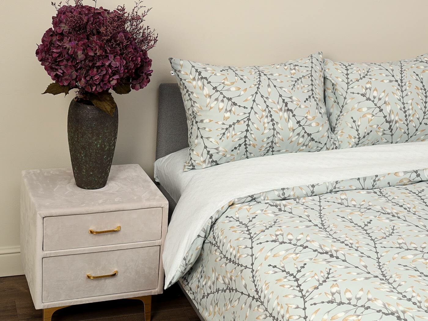 Комплект Мэгги легко стирается в обычной машине в бережном режиме и также легко гладится.
