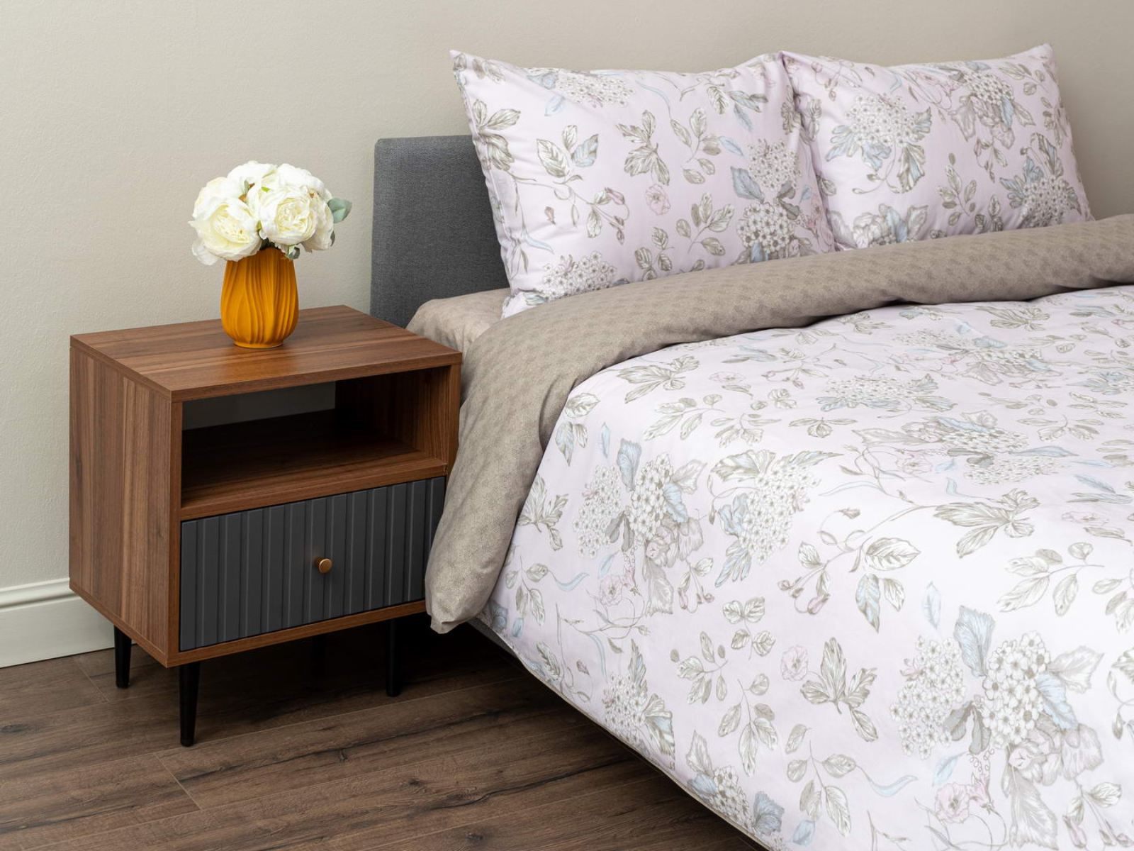 Комплект Мэгги легко стирается в обычной машине в бережном режиме и также легко гладится.