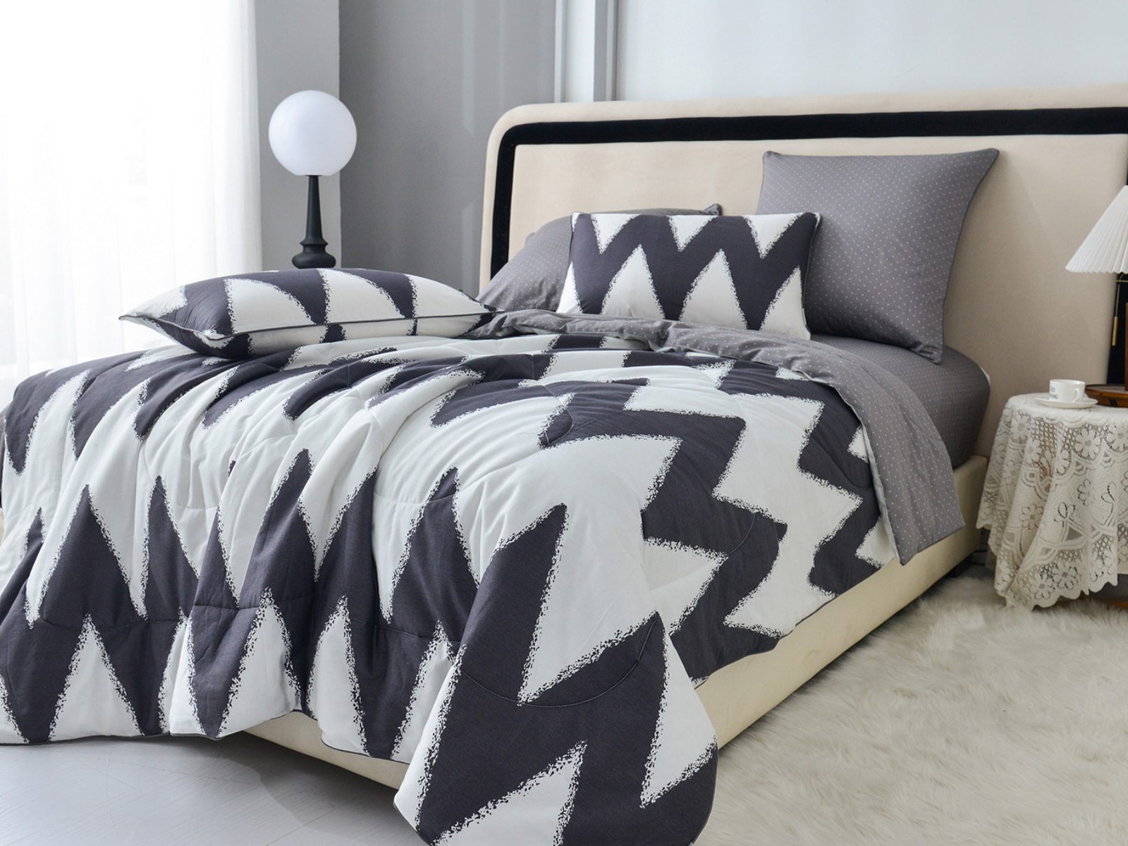 Особенность: двусторонняя модель, наволочки и одеяла декорированы кантом.