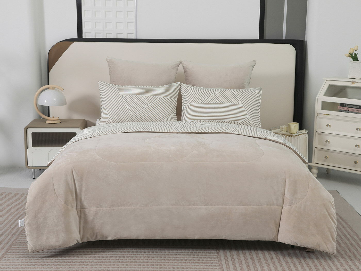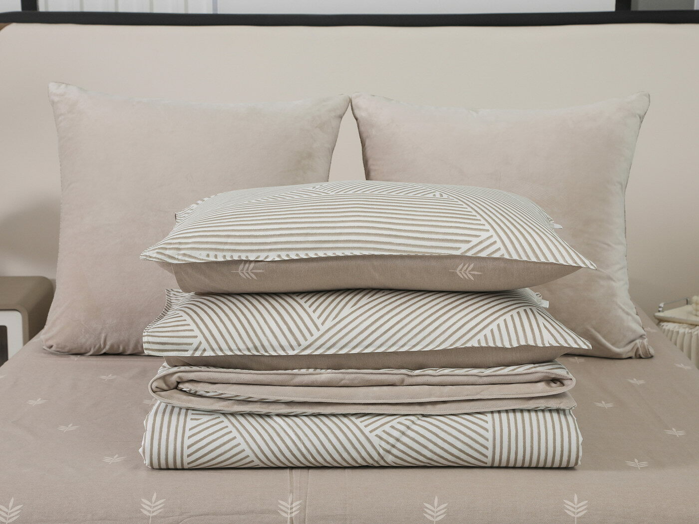 Новая коллекция комплектов «Роберто» с одеялом из однотонного велюра и принтованного сатина.