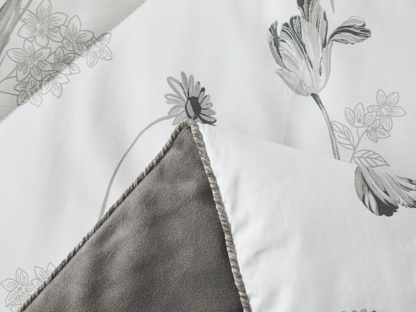 Обратная сторона одеяла – принтованный сатин натуральный хлопковый материал. На ощупь нежная и шелковистая, при этом комфортная и прочная ткань.