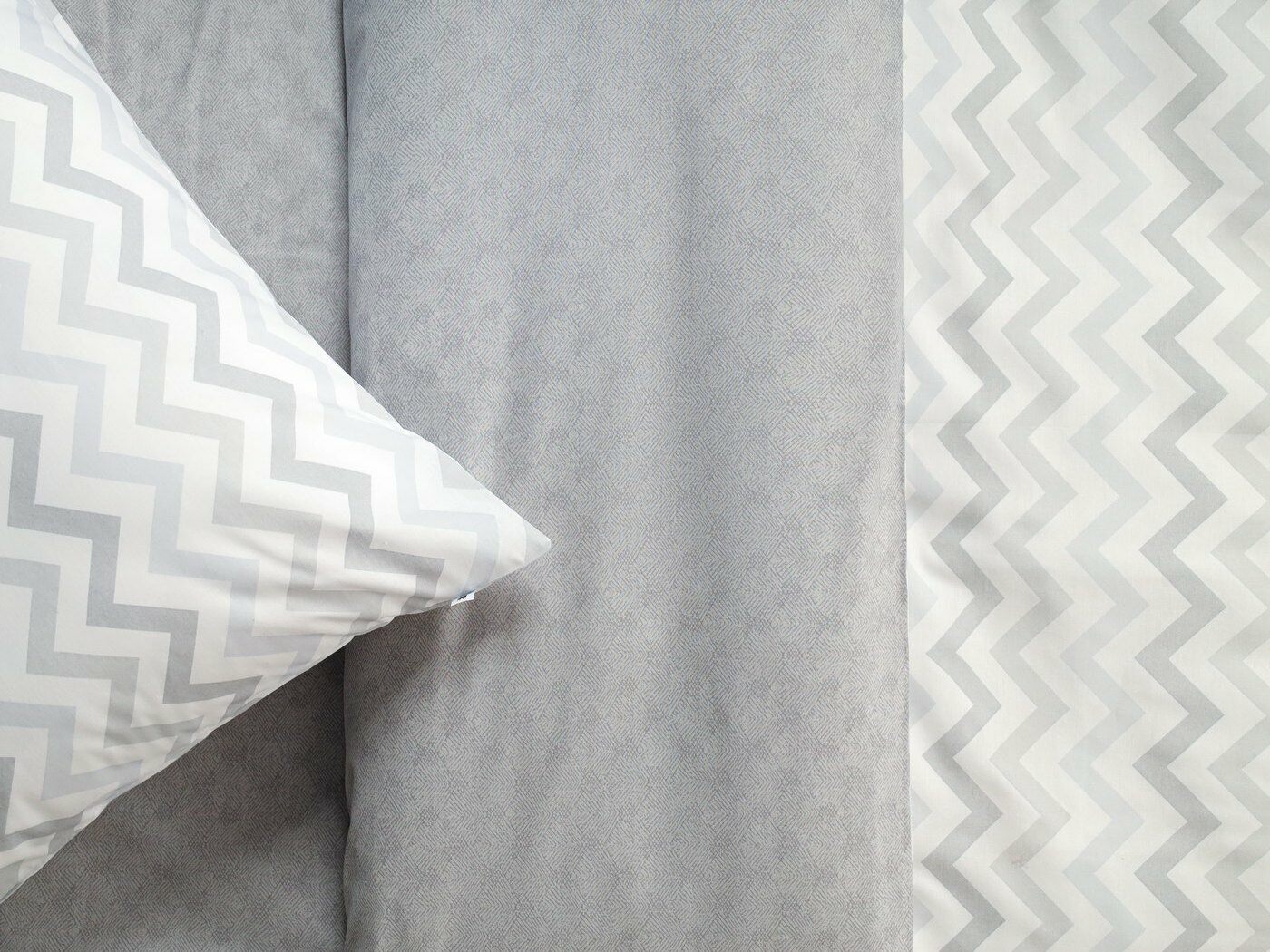 Пододеяльник –двусторонний: верх из ткани А (принтованная ткань), обратка из ткани В (однотонная рогожка), с потайной молнией.