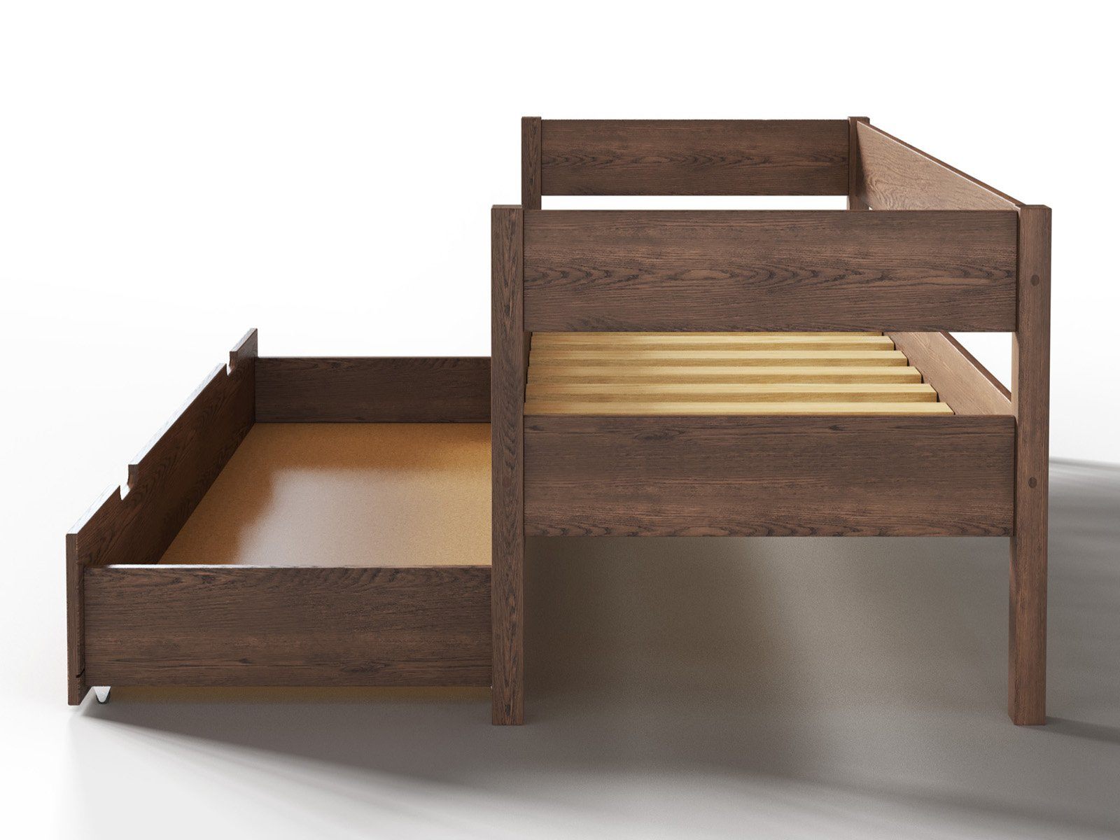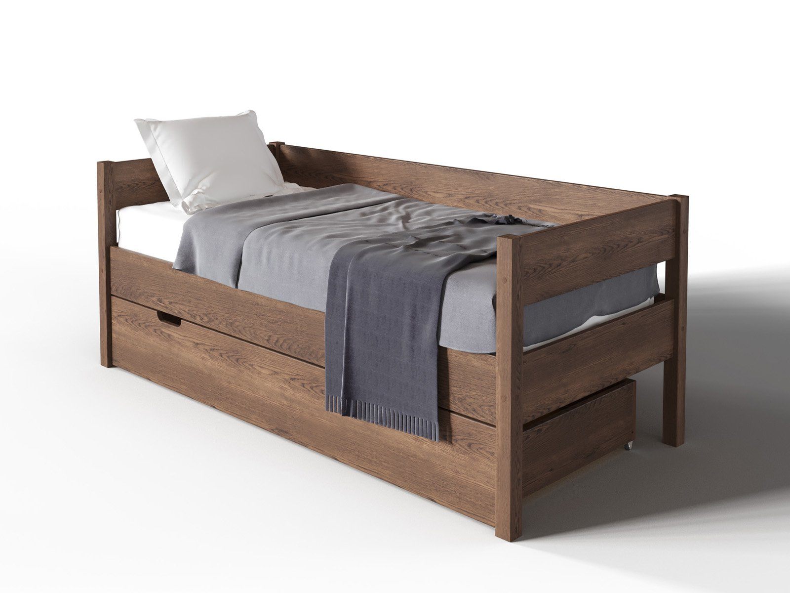 Компактная кровать «Алекса» легко впишется в любой современный интерьер детской комнаты или спальни. Ортопедическое основание кровати позволяет сформировать идеальное спальное место, подобрав матрас необходимого уровня жёсткости. Под основанием кровати расположен вместительный ящик для постельных принадлежностей.