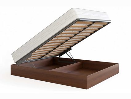 Кровать Куб представляет собой металлическое основание с ламелями из березового шпона и ящик для белья, которые соединены специальным механизмом подъема, который рассчитан под вес матраса. Стандартно предусмотрено основание Dream. Требуется сборка.