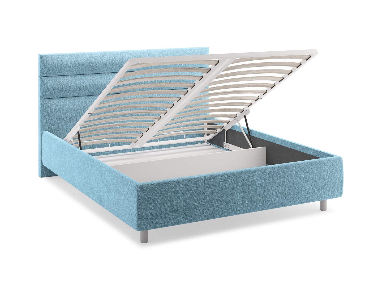 Кровать комплектуется металлическим основанием и подъемным механизмом со вместительным бельевым ящиком. Дно бельевого ящика легко сдвигается для обеспечения уборки под кроватью.