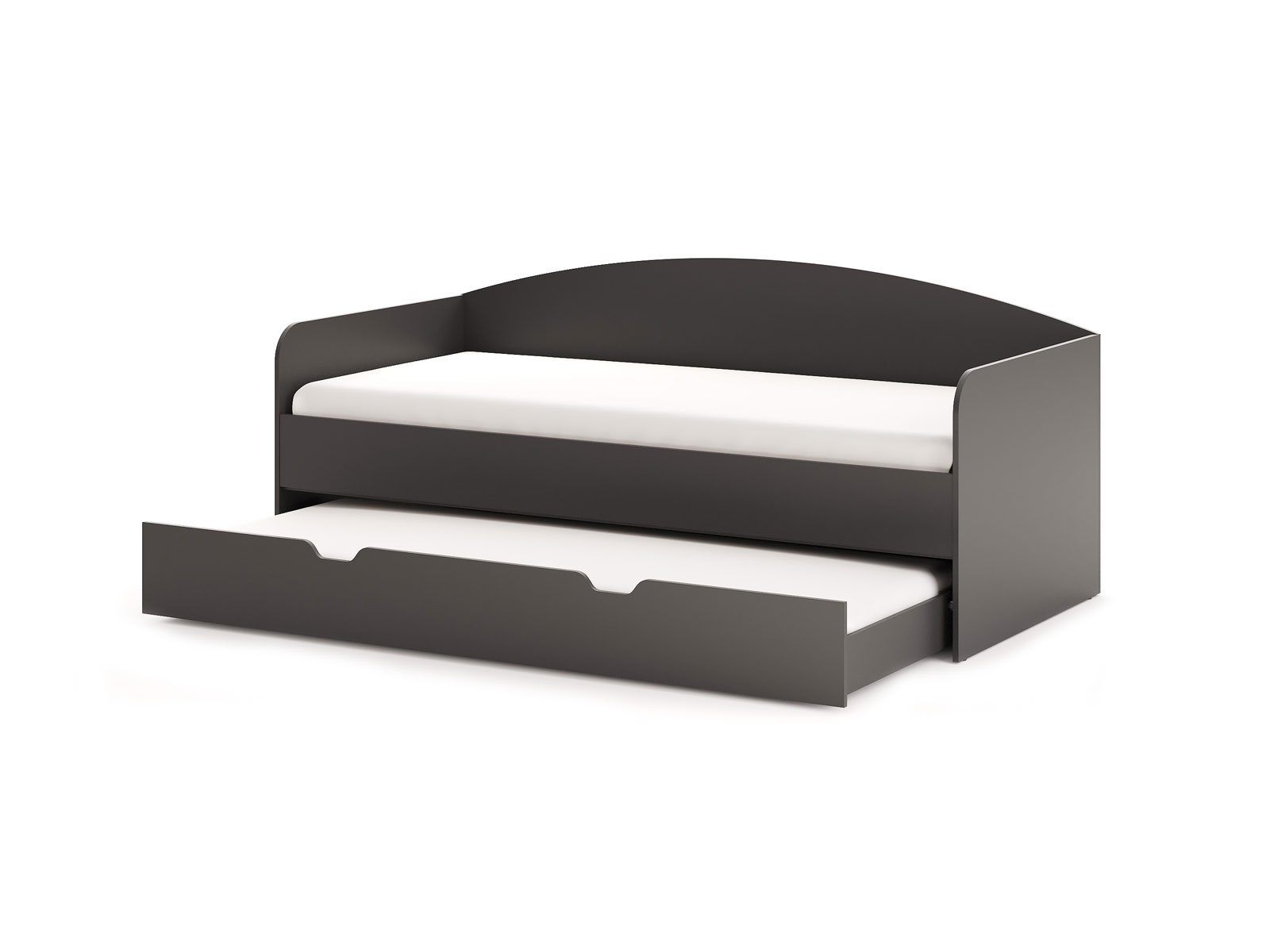 Кровать из ЛДСП с дополнительным выдвижным спальным местом. Выдвижная часть модели может использоваться в качестве дополнительного спального места или вместительного бельевого ящика. Модуль выдвигается с помощью роликов. Возможность полного выдвижения способствует легкой уборке под кроватью. Варианты исполнения: доступна в пяти цветах ЛДСП (белый, графитовый, ясень ориноко, ясмунд и ясень анкор)