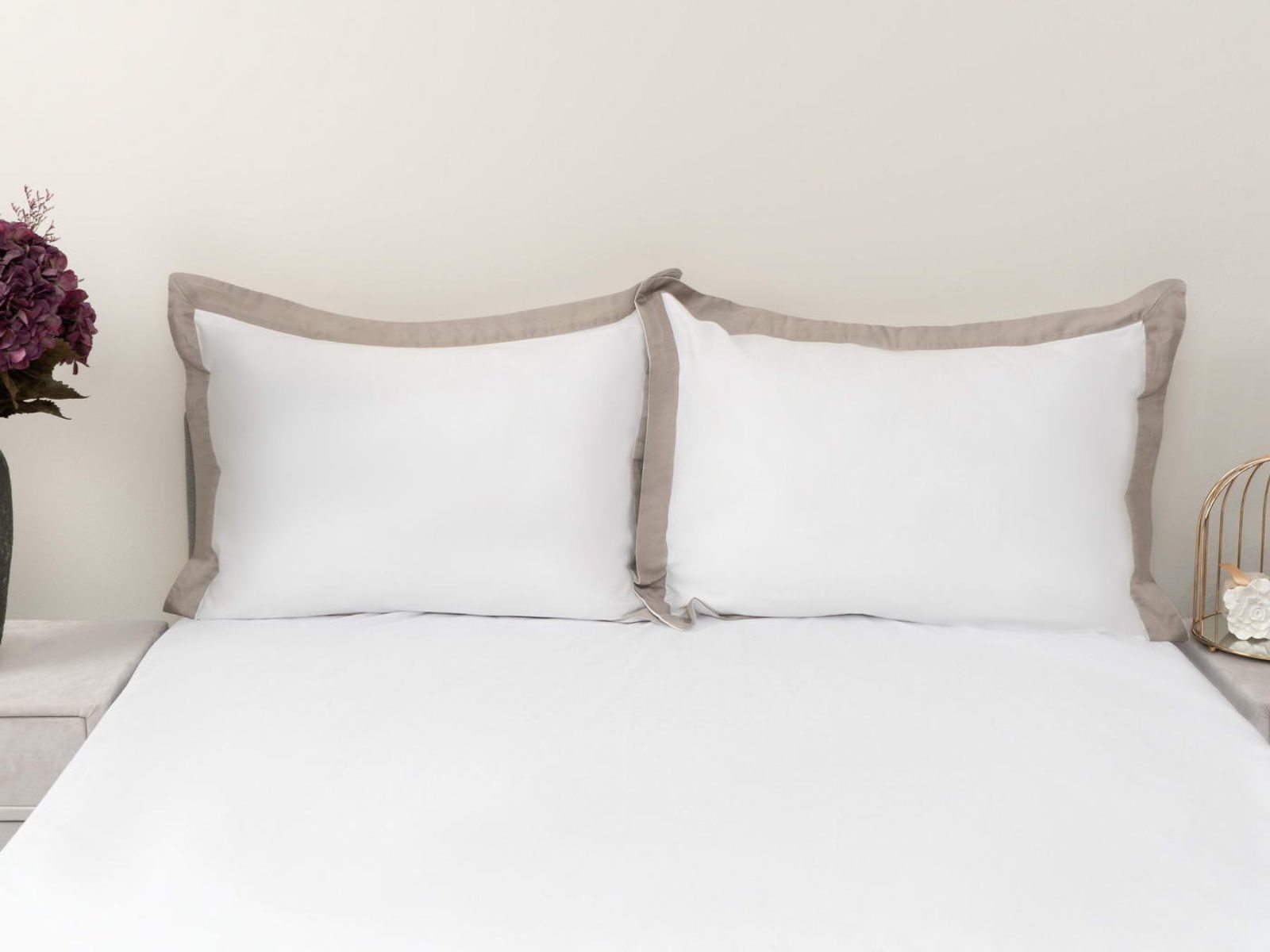 Комплект наволочек Флер изготовлен из высококачественного макосатина. Этот материал прочный, но мягкий, его гладкая поверхность придает постельному белью красивый внешний вид. Контрастные ушки наволочек придадут Вашей спальне красоту и изысканность. Они послужит замечательным подарком для родных и друзей.