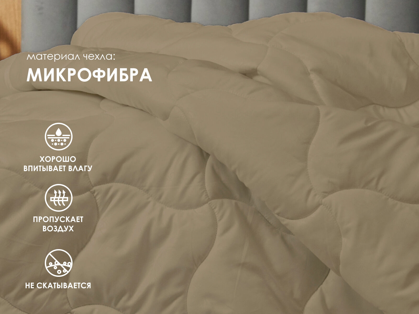 Не менее важен и чехол одеяла, выполненный из высококачественной хлопковой ткани. Эта суперсовременная ткань, состоящая из волокон, в десятки раз тоньше человеческого волоса, обеспечивает невероятную прочность и гигроскопичность. Она эффективно отводит влагу, позволяя вашему телу дышать и оставаясь сухим и комфортным в любое время.