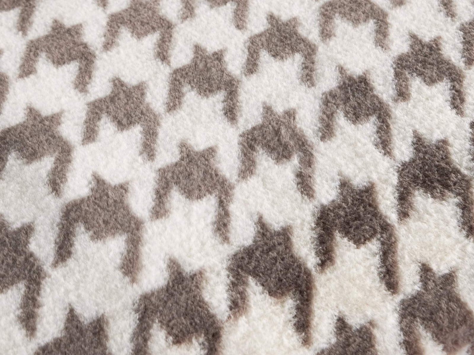 Sofi De Marko представляет вашему вниманию коллекцию Эрнесто, включающую в себя пледы и декоративные наволочки из искусственного меха с принтом «гусиная лапка».