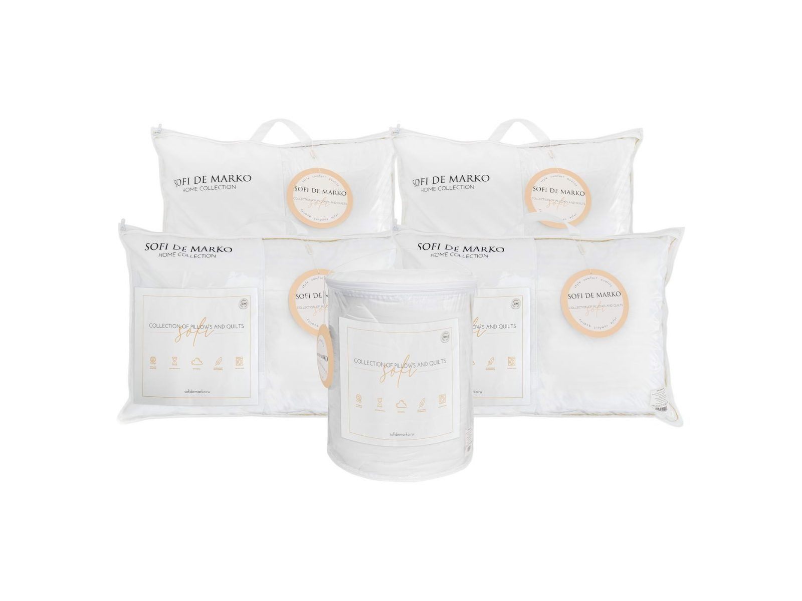 В качестве наполнителя используется 100% искусственный лебяжий пух. Этот современный наполнитель гипоаллергенен и обладает долгим сроком службы. Искусственный лебяжий пух в подушках SOFI поддерживает голову в правильном положении и обеспечивает крепкий и здоровый сон. А одеяла SOFI с таким наполнителем можно использовать в любое время года.
