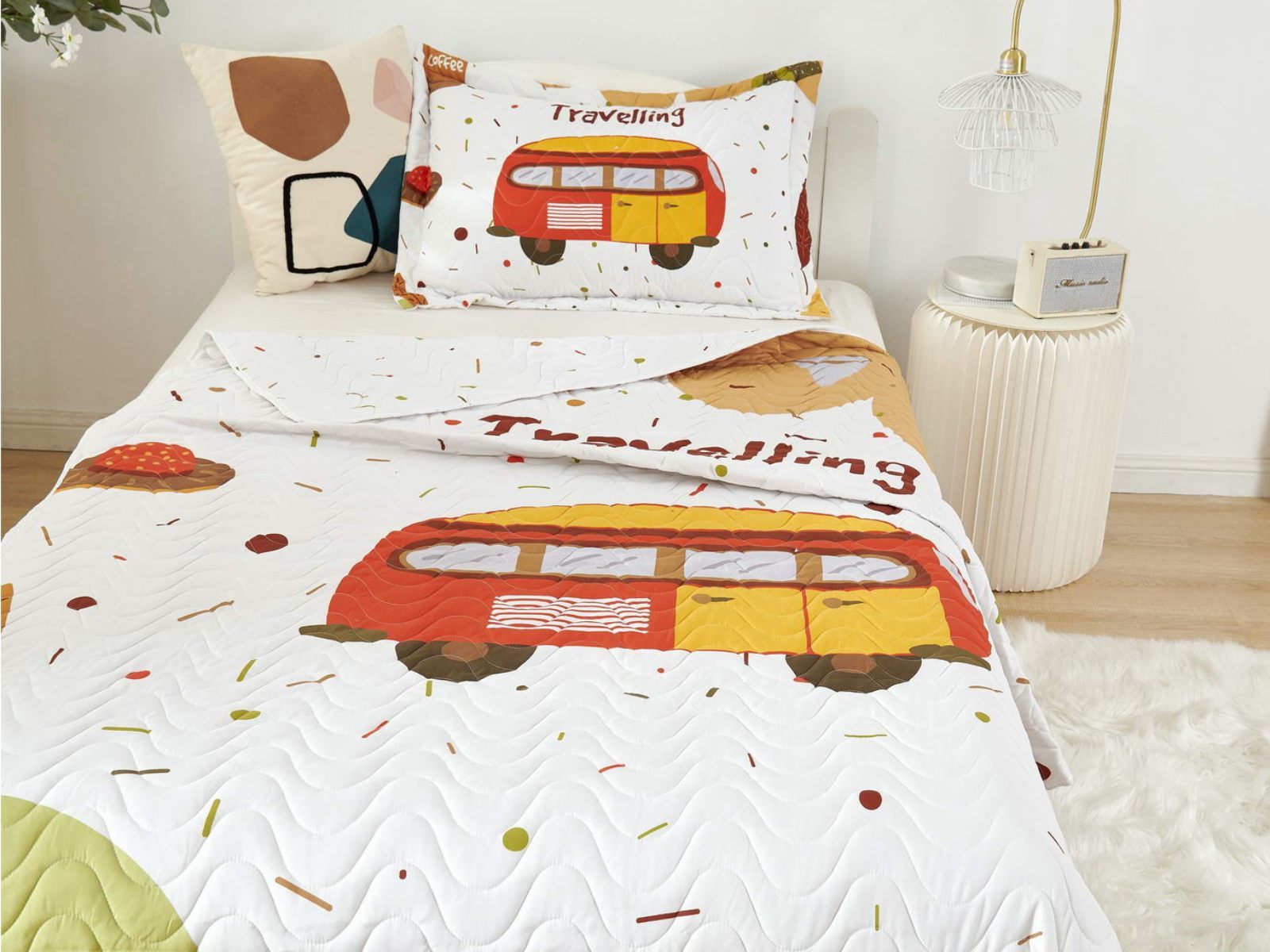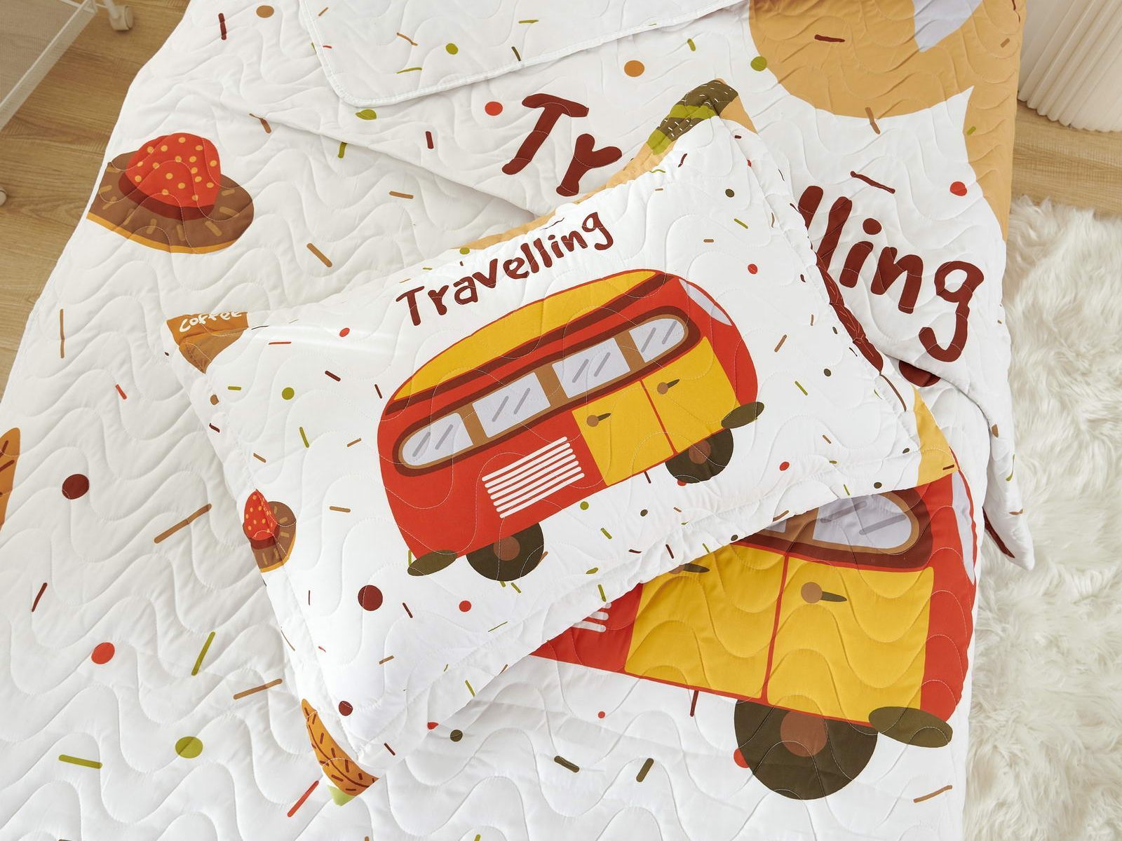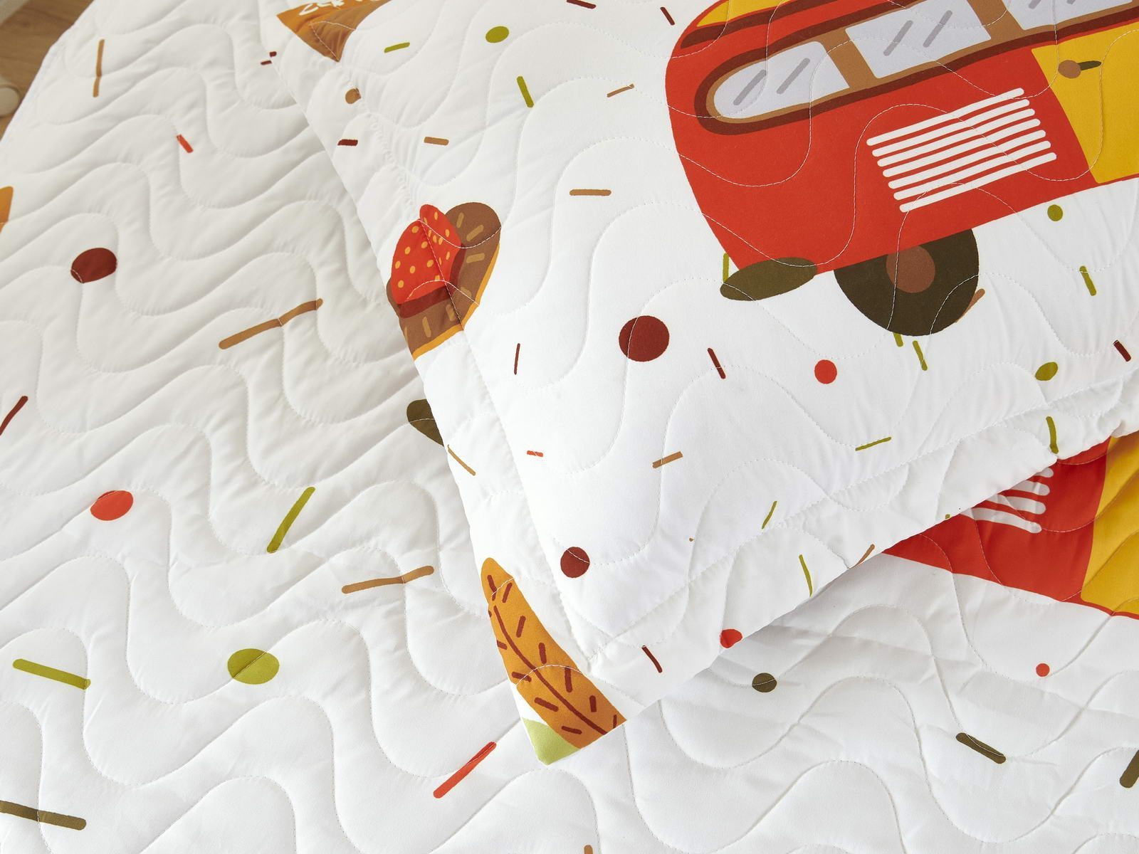 Детские покрывала - это особая забота об уюте и комфорте ребенка. Красивое, стеганое покрывало коллекции «Sunny day» придаст любой детской спальне яркую индивидуальность. Волнистые стежки делают изящные покрывала еще более выразительными и изящными. К ним в комплекте идут наволочки, у них есть интересная особенность, которая непременно понравится ребенку– небольшие ушки.
