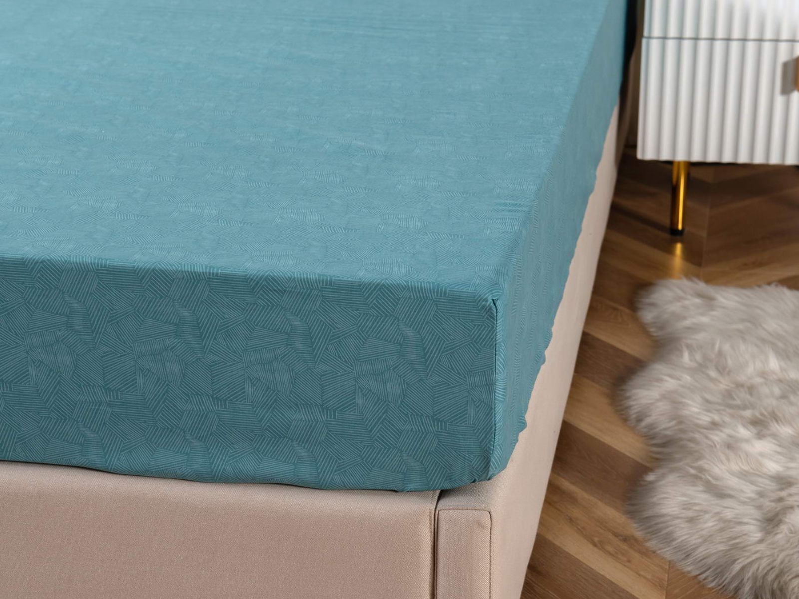 Удобная и практичная простынь на резинке не будет топорщиться и сбиваться во сне. Подойдет для матрасов высотой до 30 см.