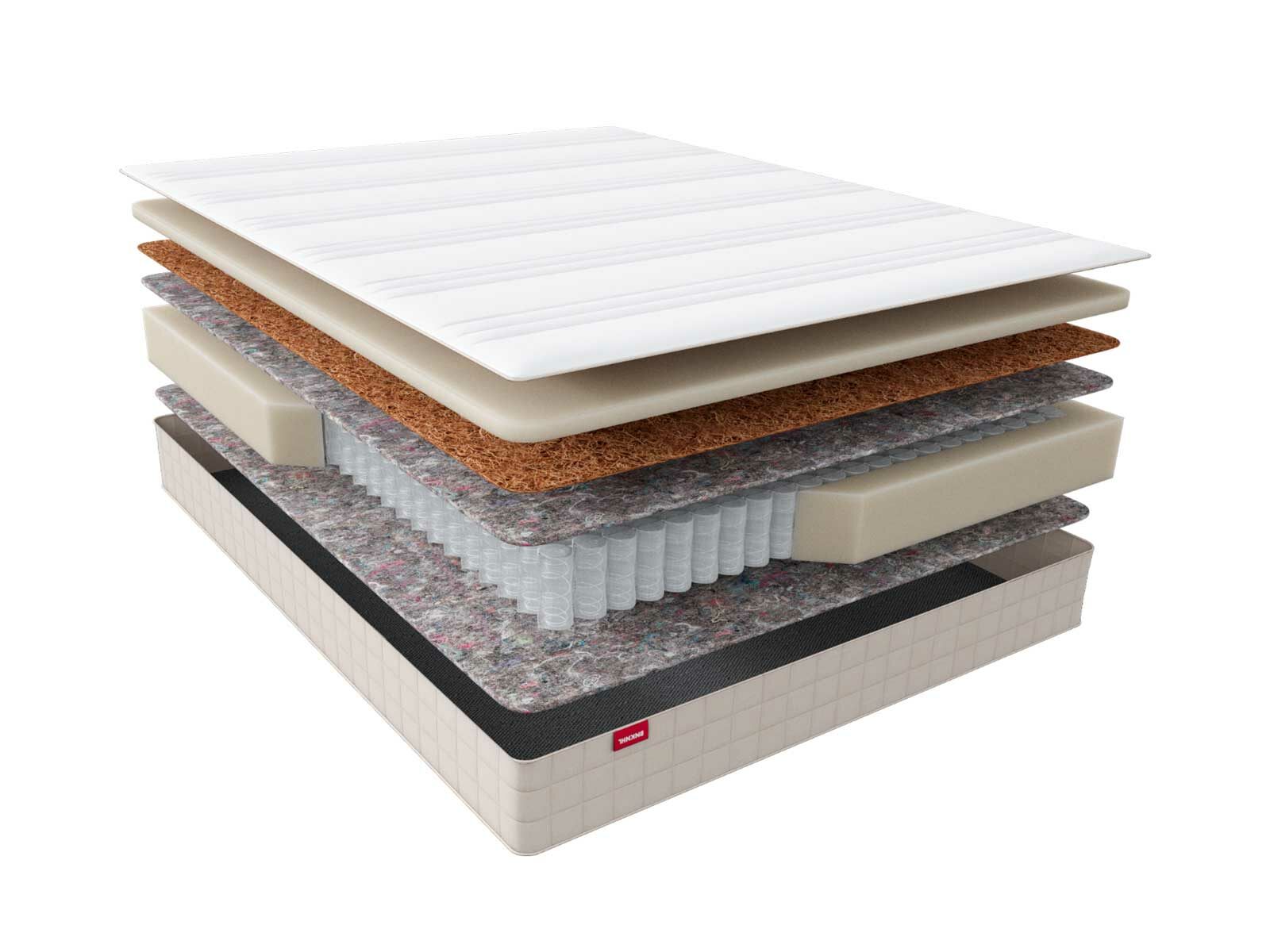 Жесткий, экологически чистый и долговечный наполнитель, получаемый из ореха кокосовой пальмы. Кокосовое полотно используют в матрасах для создания оптимальной степени упругости и жесткости матраса.