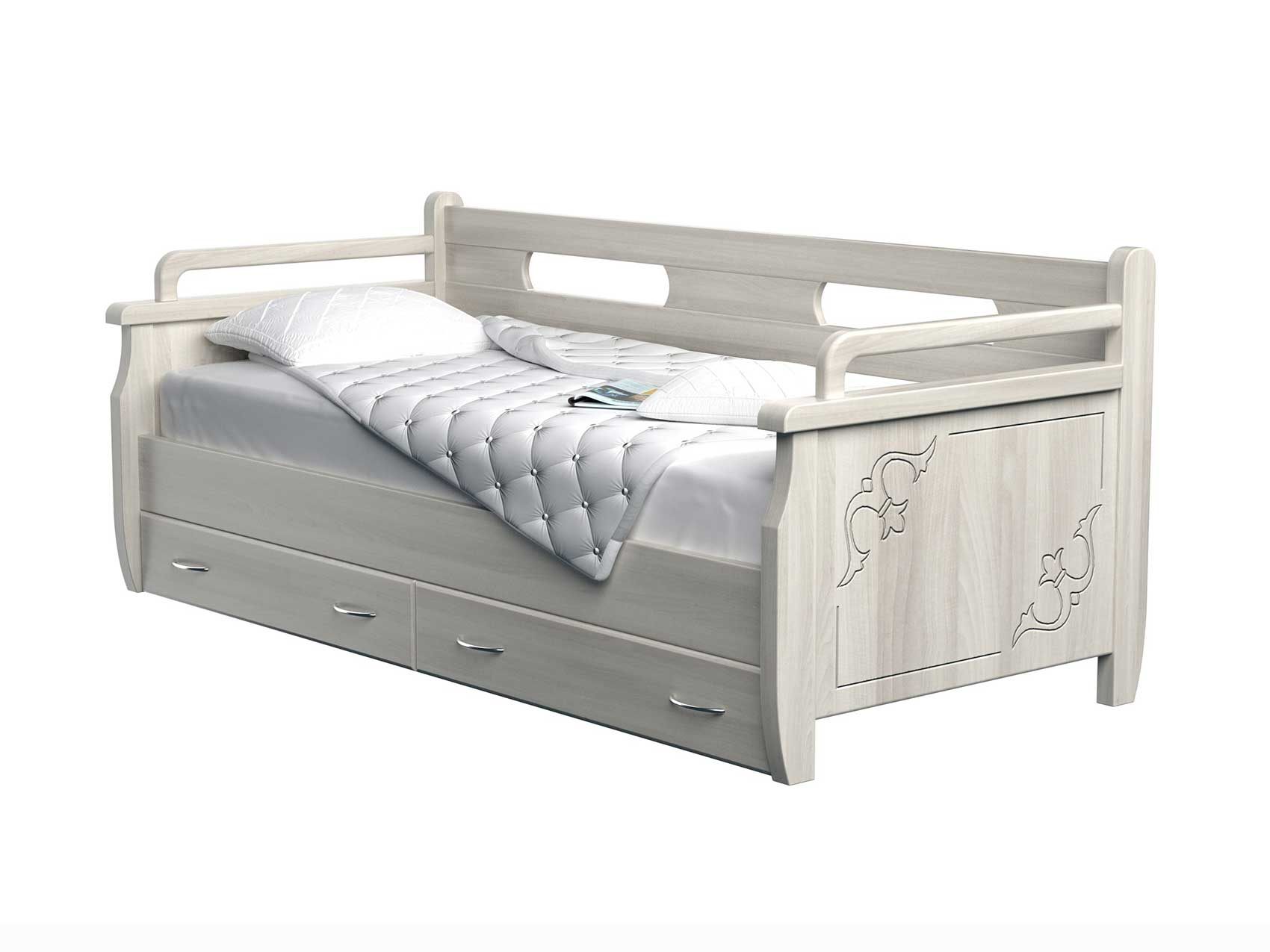 Живая классика для Вашего интерьера. Как и у всех моделей кроватей практичность и универсальность кровати, возможность комплектования как выкатными ящиками, так и ящиком для белья из массива или ЛДСП с подъемным механизмом фронтального или бокового открытия являются неоспоримыми преимуществами этой модели. Стандартно не комплектуется выкатными ящиками, ящики заказываются и оплачиваются отдельно Задняя спинка — 85 см., боковые поручни — 75 см.