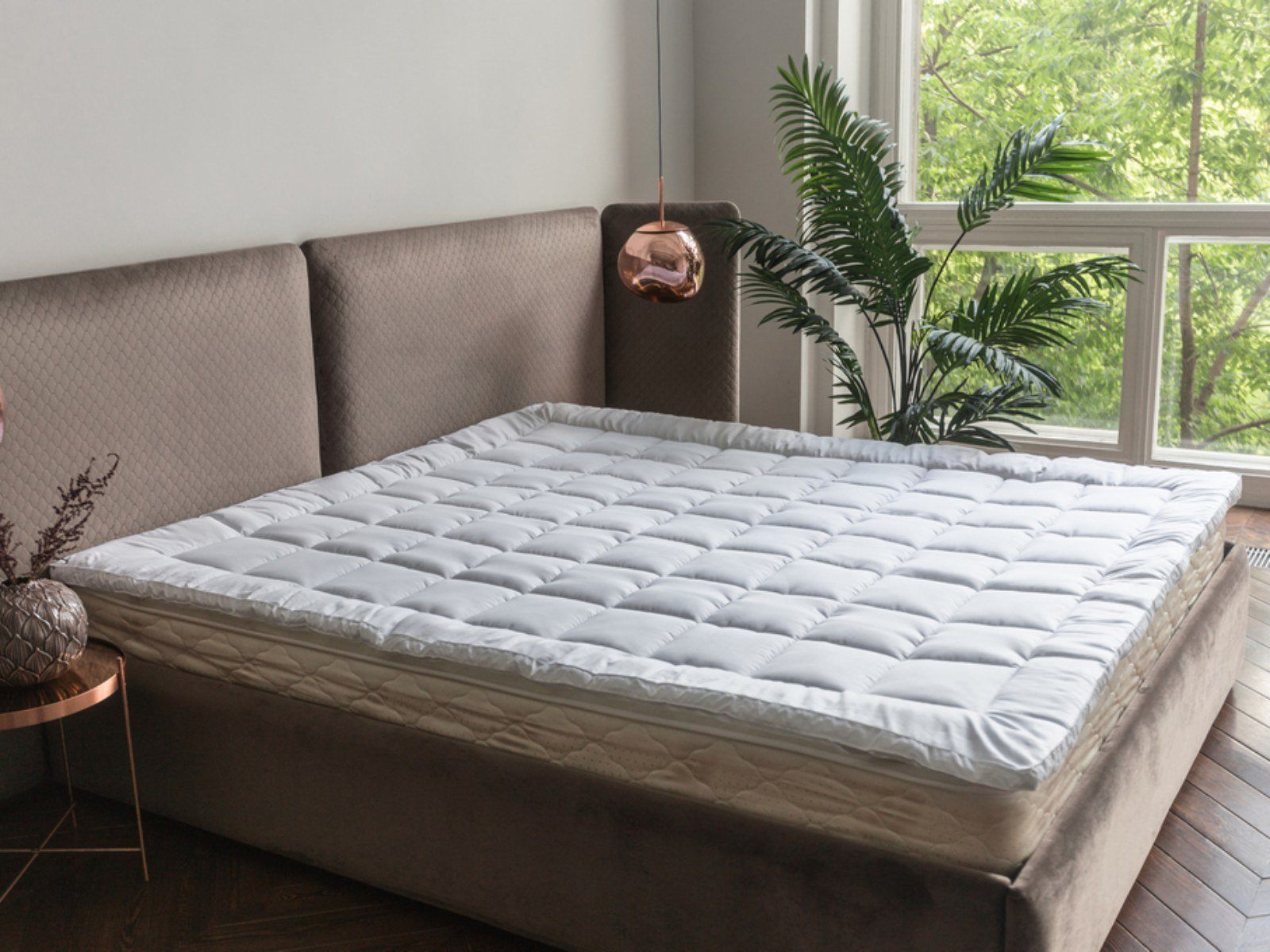 Топперы- это особый, сложно сконструированный вид наматрасников повышенного комфорта, которые не только продлевают срок службы матраса, но и усиливают основное назначение матраса - снять мышечные напряжения во время сна. Дополнительный объем наматрасника достигается за счет особой формы "с бортиком", обеспечивая дополнительное чувство безопасности и уюта. При изготовлении топпера применяется особый вид наполнителя- HOLLCON, который имеет структуру спиралей, расположенных в вертикальной плоскости, что позволяет удерживать форму при деформациях и сжатиях.